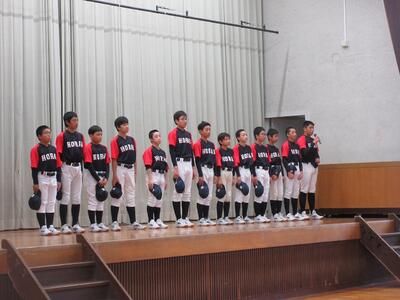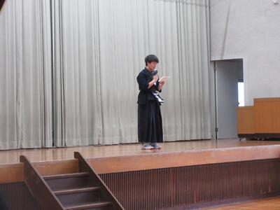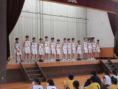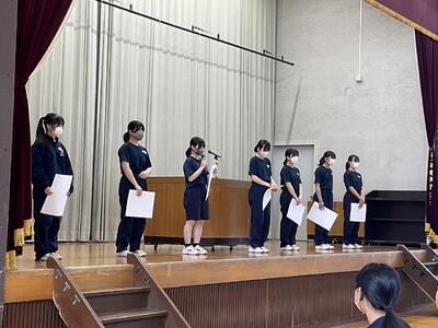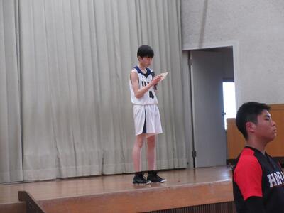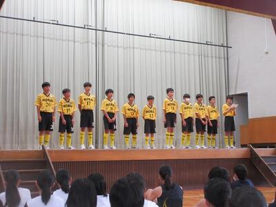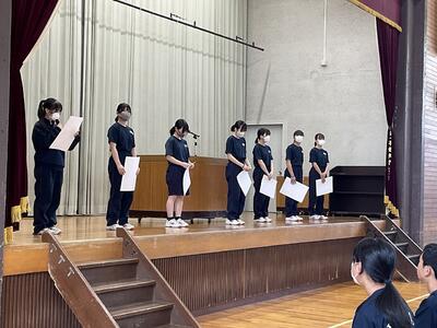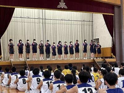 6月14日(金)の全校集会では、中体連支部大会等の表彰披露と県北大会出場者の激励が行われました。