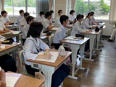 7月2日(火)に蓬萊町にあるムネカタ株式会社さんをお呼びして、1学年を対象に「社会人に学ぶ会」が実施されました。