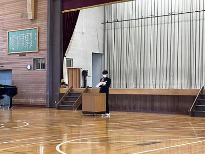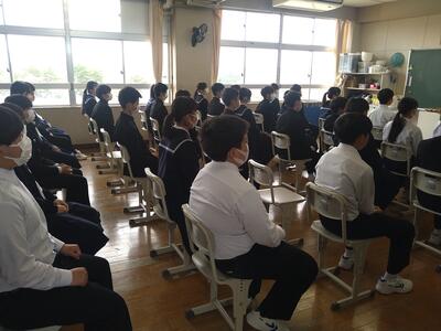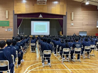 23日(火)の6校時目に、今年度はじめての全校集会が行われました。
