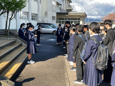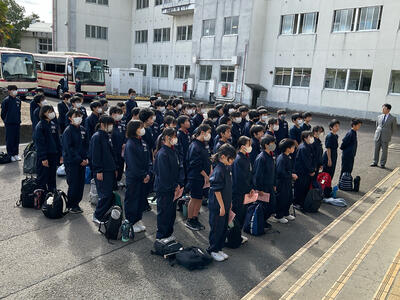 中学校に入学してからはじめての校外行事でしたが、元気よく出発したのち、無事に帰校しました。