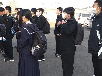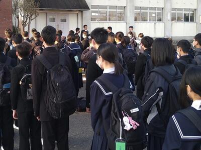 朝は少し肌寒かったのですが、生徒たちの期待に応えるように晴れた空の下、出発式を行い、3年生は鎌倉に向けて出発しました。