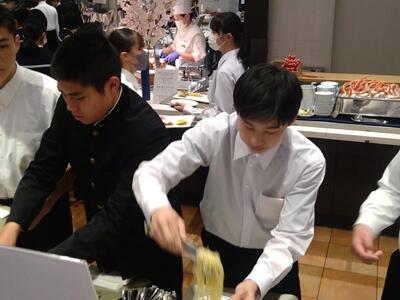 今日の夕食はバイキングです。つい食べ過ぎてしまわないように、バランスに気をつけて食べましょう。