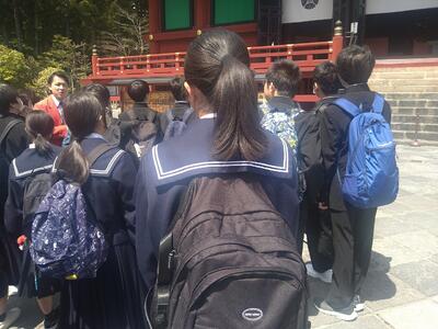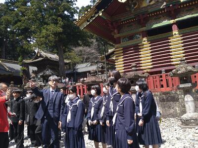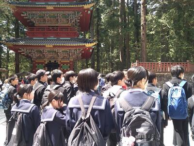 日光東照宮に到着しました。天気にも恵まれ、絶好の見学日和でした。どのクラスもガイドさんの話をしっかりと聞きながら見学しています。