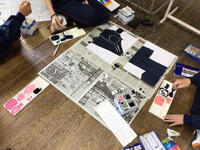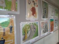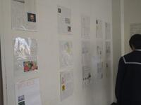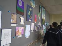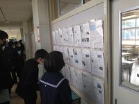 展示見学では、新聞コンクールとして作成された各クラスの新聞や、授業で作成した作品が展示されました。様々な教科での頑張りが見えるものが多く、生徒たちも多くの作品に興味津々でした。