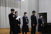 2学年の代表2名が英語弁論大会で発表した弁論を披露しました。夏休み中も時間をかけてたくさん練習していた弁論は、2人の気持ちや思いがつまったすばらしい発表でした。