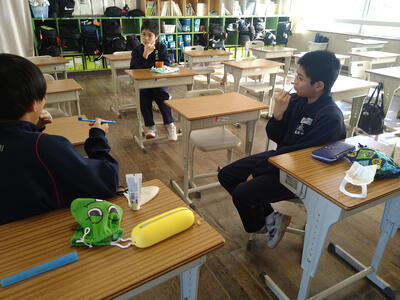 また、昨日から歯磨き習慣化運動がはじまりました。放送での呼びかけもあり、教室や廊下、水道で歯磨きをする姿が見えています。