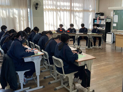 1月9日(火)に第3学期始業式を行い、寒い中ですが生徒のみなさんは元気に生活しています。特に3年生は入試やテストが多く忙しい日々ですが、自分の進路決定のため頑張っている姿が見られます。