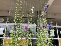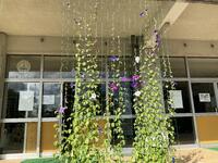 そんな残暑の中でも、昇降口のエコカーテンの朝顔は毎朝きれいに咲いています2階や3階からも、きれいに咲いているのがよく見えるため、生徒たちからも「きれいだね」と声が聞こえます。