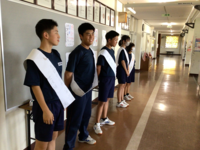 また、9月22日に行われる生徒会役員選挙に立候補をしている皆さんは、朝やお昼の時間を使って選挙活動を行っています。立候補者の皆さんのポスターは、工夫を凝らしたものが多く、どのポスターも目を引きます。