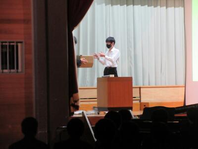 4名のうち2人が蓬萊中の卒業生ということで、生徒たちは、先輩方の立派な姿に大いに刺激を受けた様子でした。
