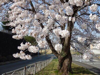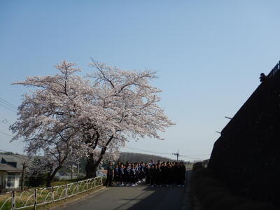 〈 校門からわずかにのぞむサクラ 〉 〈 通学路わきのサクラ 〉