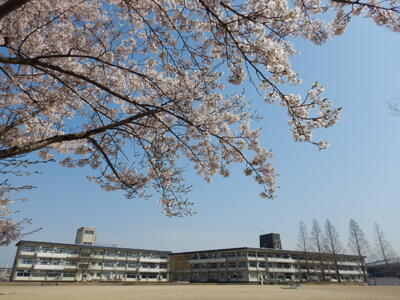 〈 サクラを背景に1年生記念撮影 〉 〈 校舎とサクラ 〉