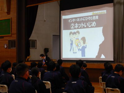 スマートフォンを中心に、インターネットのトラブルを未然に防ぐための知識や心構えなどを学ぶために、昨日、「防犯教室」を実施しました。