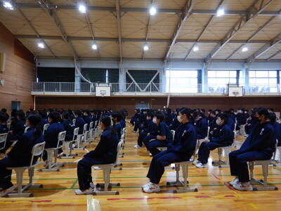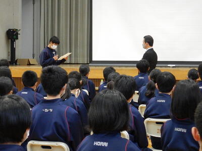 終わりに、生活委員長が「きょう教えていただいたことを、今後の生活に役立てていきたいと思います。」と、生徒を代表してお礼の言葉を述べました。(写真C)