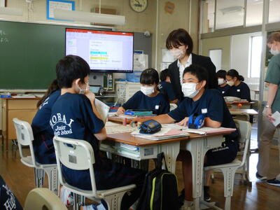 今日は教科の研究授業(写真A・1年、B・2年)を行い、その工夫された授業の中で生徒も真剣に学んでいました。