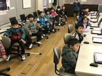 3校時は校舎内を案内してもらい、パソコン室で学習ソフトを使った算数の勉強を体験しました。