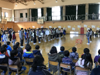 会の後半には、鼓笛移杖式も行われ、4・5年生の新しい編成での鼓笛演奏も披露されました。