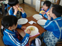 1年生も2年生のお兄さんお姉さんと協力しながら美味しいクレープを作ることができました。