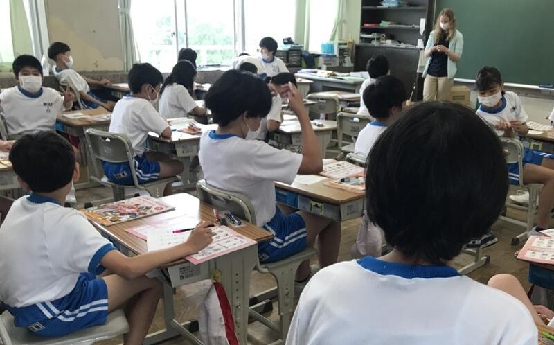 5年 外国語 2022年5月31日 12時59分 本日は、ALT(assistant language teacher)のレベッカ先生の来校日です。5年生では、英単語ビンゴゲームで楽しく学習を進めていました。