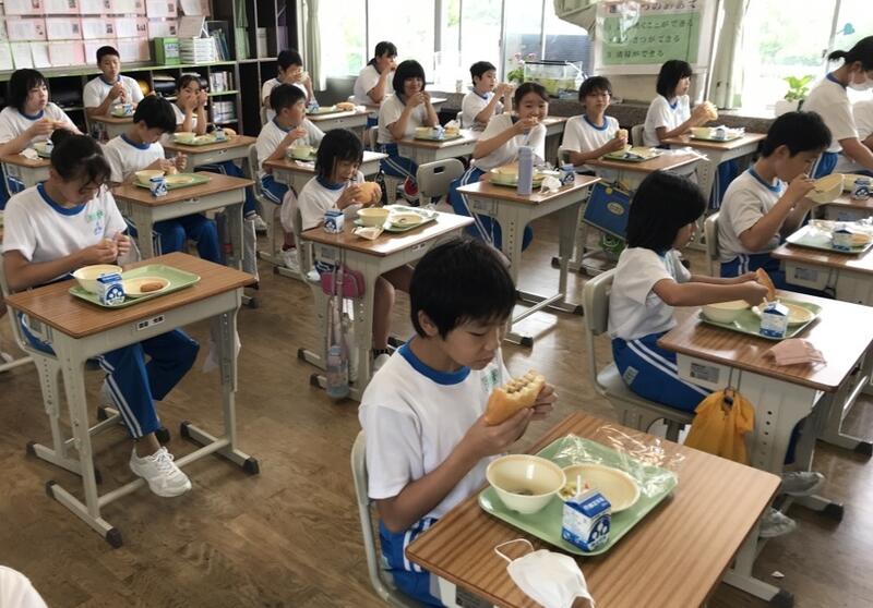 2022年6月22日 12時53分今日の献立は「サラダパン/ハムチーズフライ/オニオンサラダ/わかめとたまごのスープ」