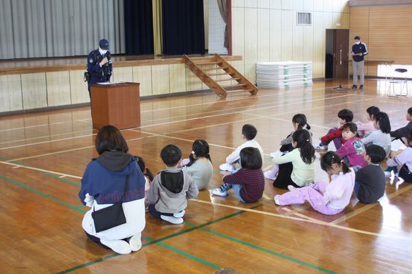 1年生は3校時に行いました。警察官の方から交通安全で気を付けることや不審者対応についてお話がありました。