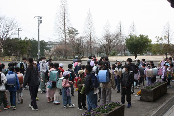 2~6年生は5校時に行いました。警察官の方から交通安全で気を付けることや自転車の安全な乗り方についてお話がありました。その後、同じ方向ごとにまとまって先生方と一緒に下校しました。