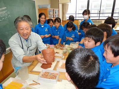 土器作りに挑戦しました 6年生 2019年11月27日 19時20分 今日は、6年生が縄文土器作りに挑戦しました。まずは、福島市の文化財調査室の新堀さんから土器の作り方を教えていただきました。土器の形の作り方、模様のつけ方などを教えてもらいながら、粘土をこねること2時間。それぞれイメージしていた通りの土器を作り上げることができました。「粘土の感触が気持ちよかった」「形を作るのがなかなか難しかった」「もっと作りたい」などの声が聞こえてきました。