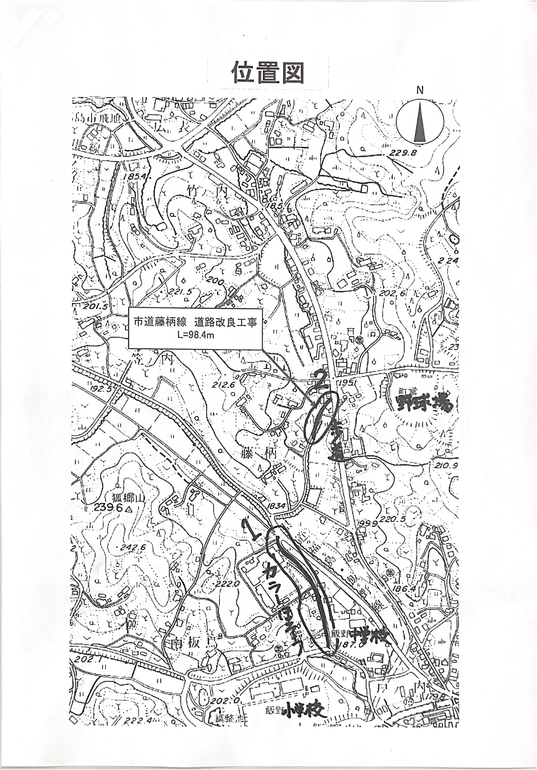 飯野小の通学路の道路工事が2か所行われます。