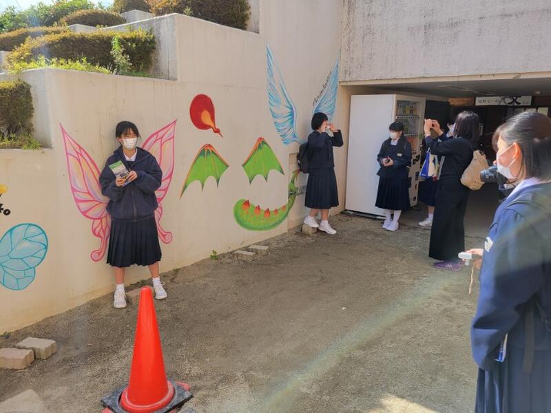 フォトスポットに立って。私はチョウよ。私は天使。ドラゴンはだれかしら。