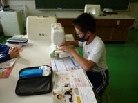 5年生が、家庭科の学習でミシンを使っていました。初めてミシンに触れる子がほとんどです。最初は苦労していましたが、だんだん慣れてきたようです。