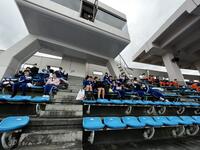 遙か向こうに見えるのは、信夫山です。今年度の陸上大会は、「とうほう・みんなのスタジアム」で行われました。入賞した選手も、また入賞を逃した選手も、自己ベストを目指し、全力出し切りました。寒い中、みんなよく頑張りました。