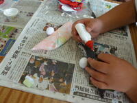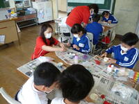 婦人会の方々に教えていただきながら、3年生が、つるしびな作りに挑戦しました。とても上手に作ることができました。