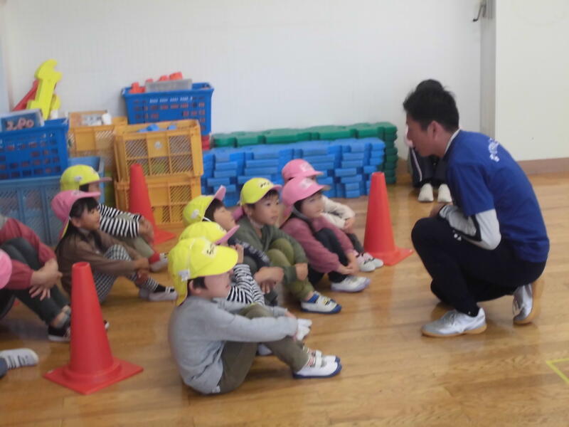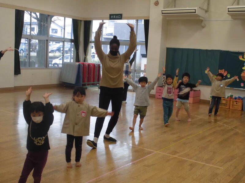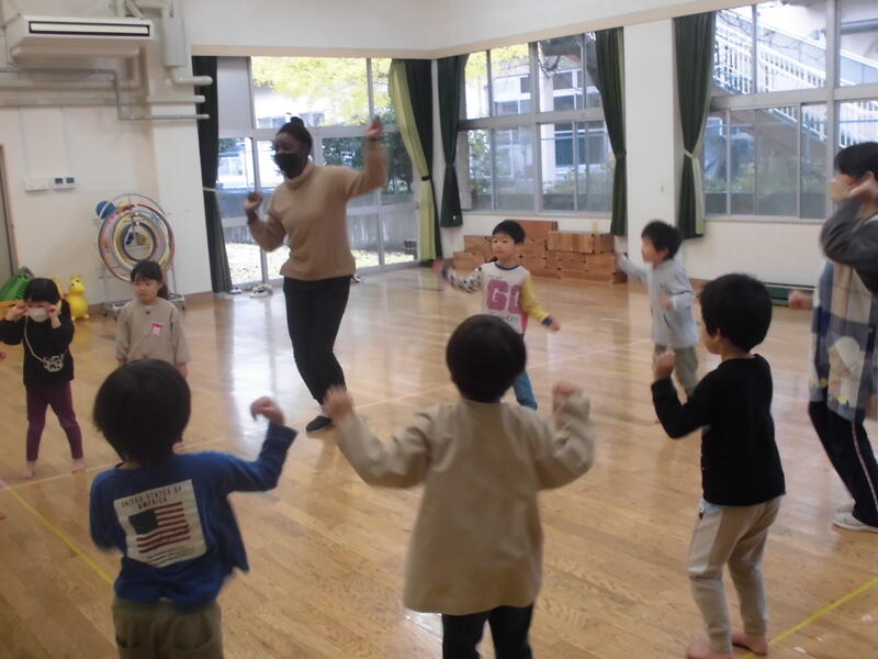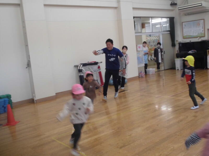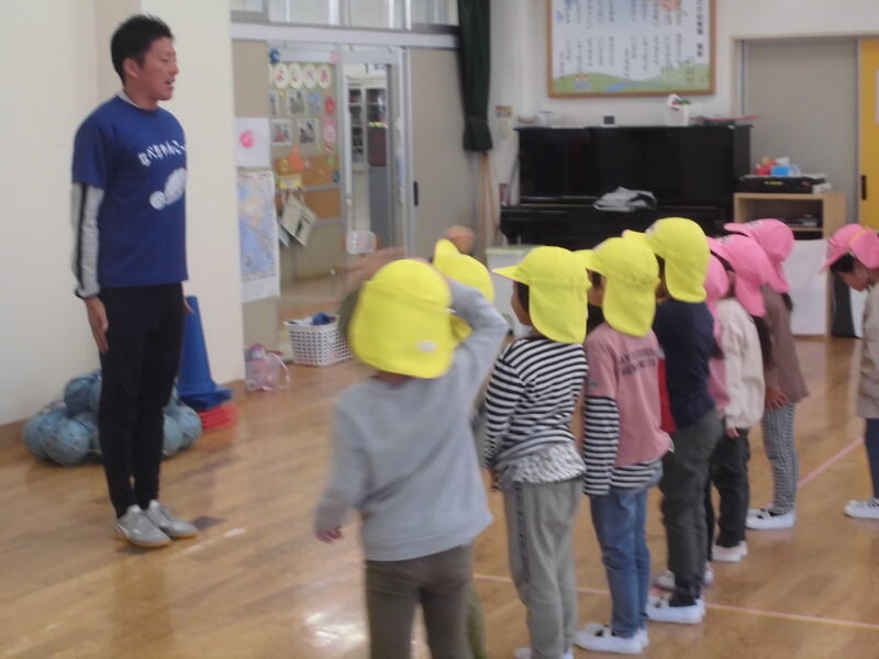 今日はALTのベネ先生が来園しました。朝の体操から始まり、ゲームやドッジボールなどで園児と触れ合いを楽しみました。次回の来園も楽しみにしています。