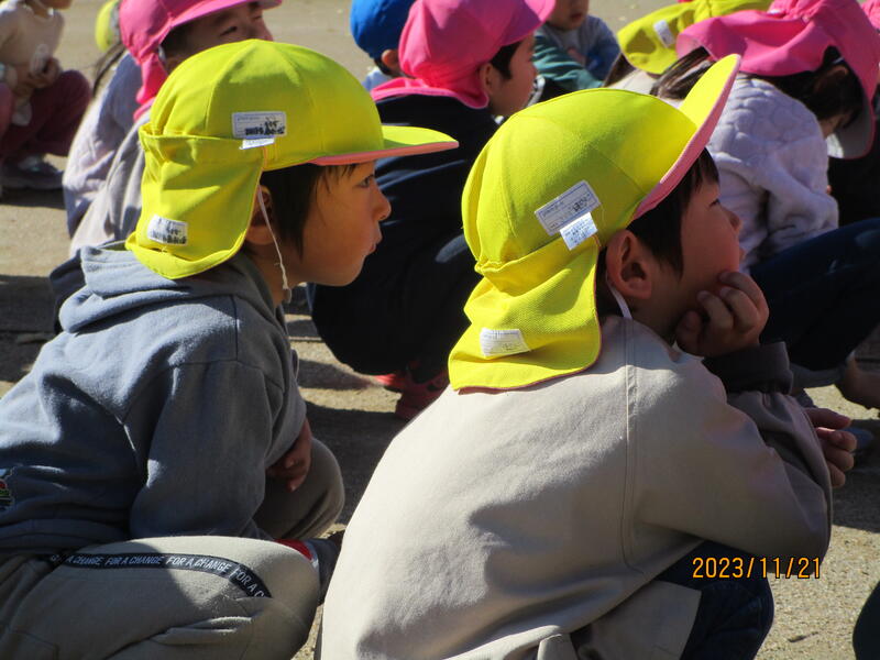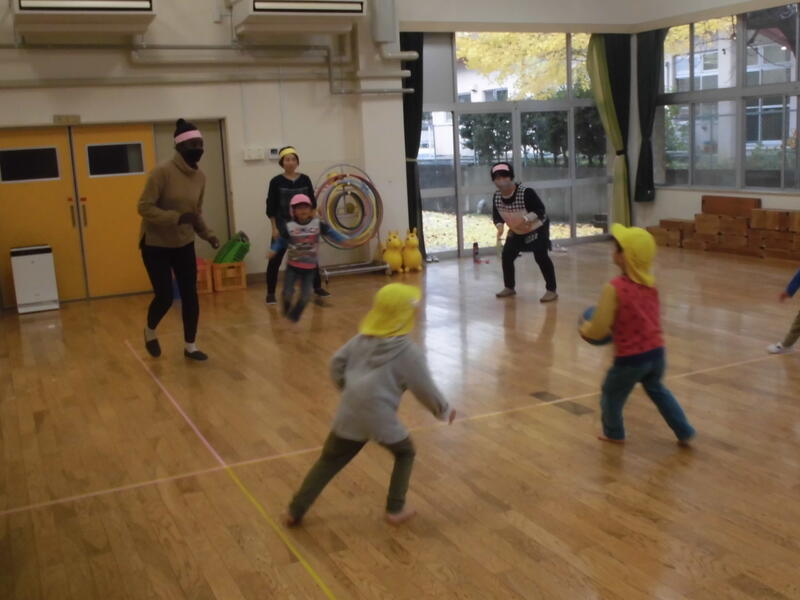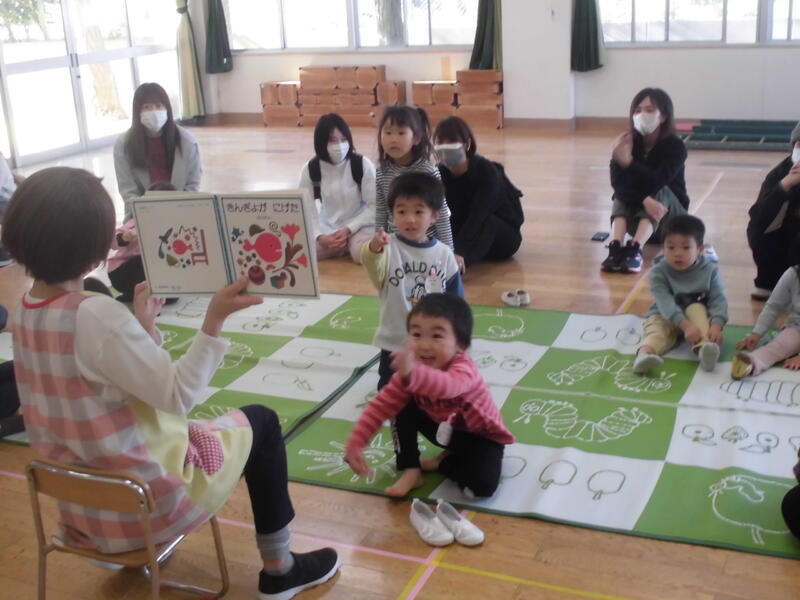 遊戯室や園庭でお兄さんやお姉さんとともに楽しく遊びました。また、遊んだ後に行った絵本の読み聞かせを興味深く聞いていました。次回の保育にもたくさんの皆さんに参加してもらえることを期待しています。