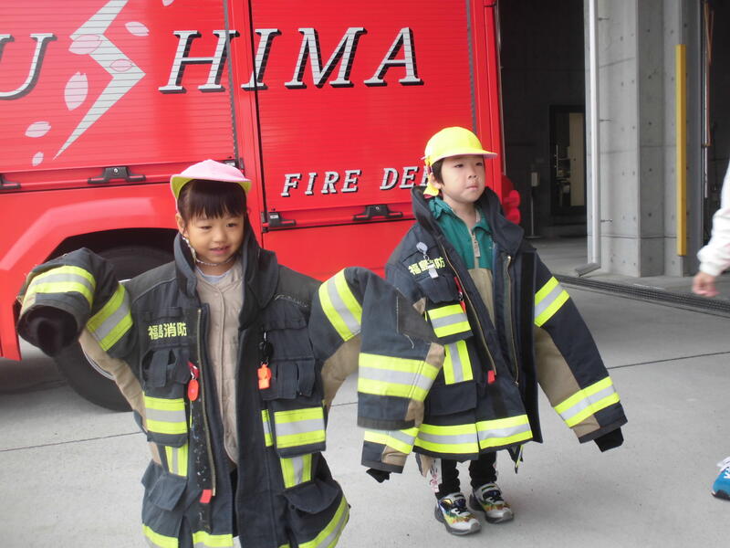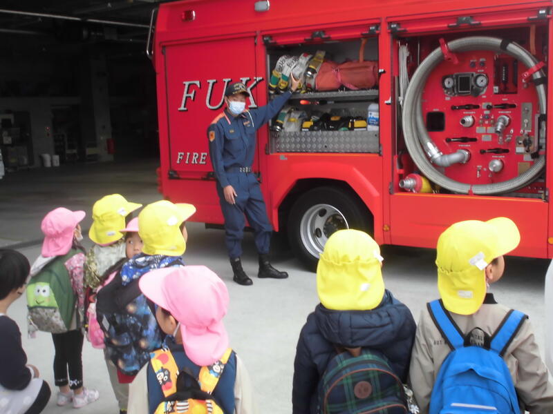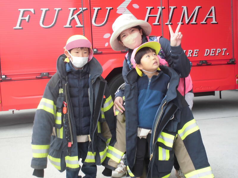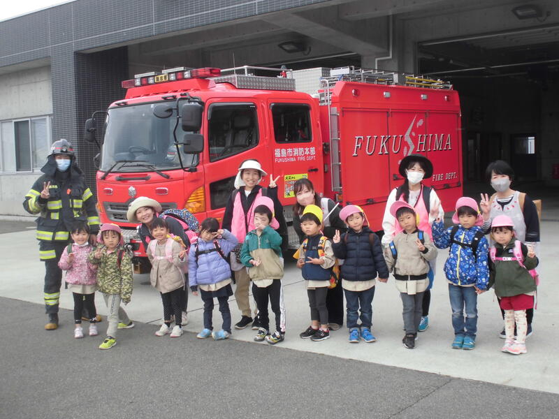今日は園外保育で飯坂消防署を見学してきました。