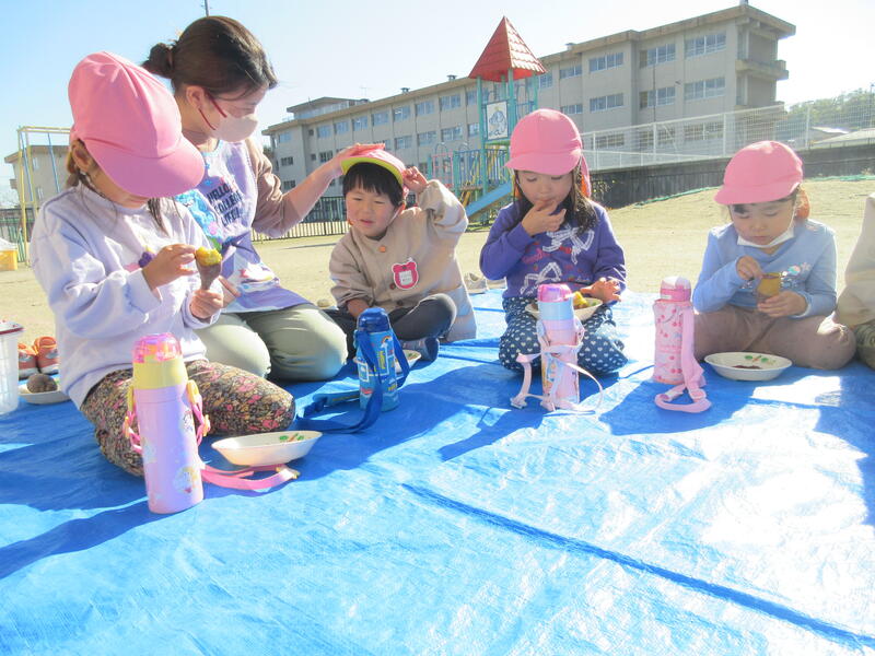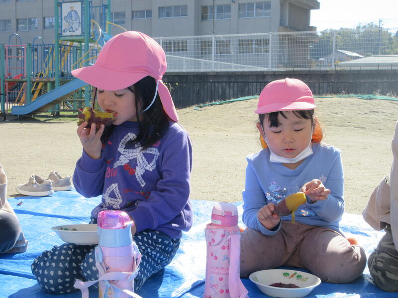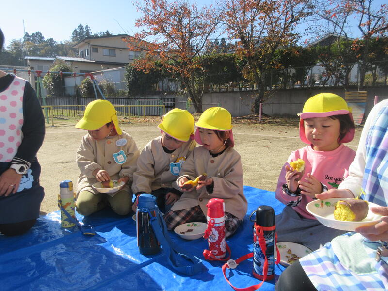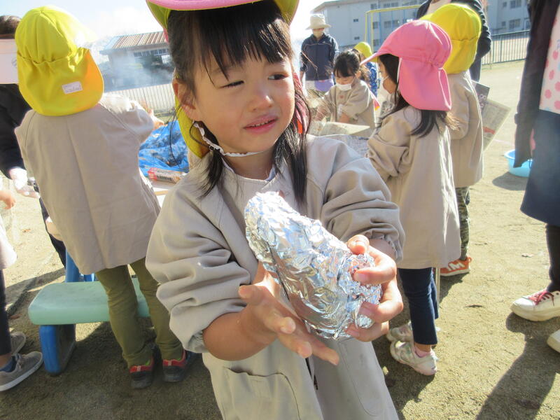 今日は、以前に掘り出したサツマイモを焼き芋にしていただく日です。