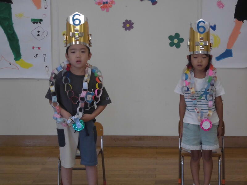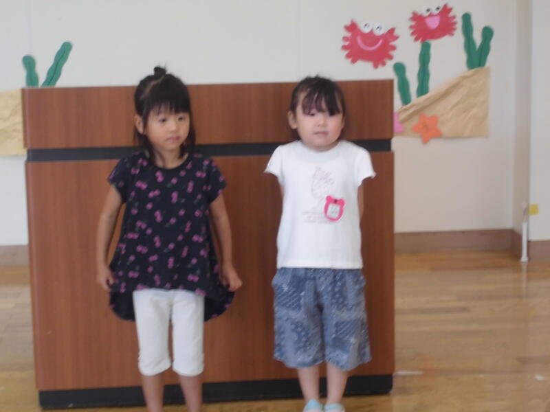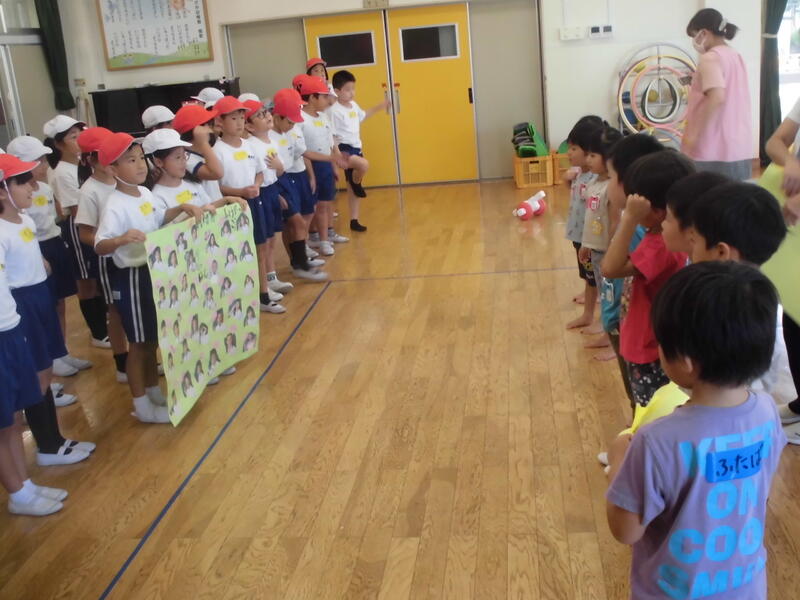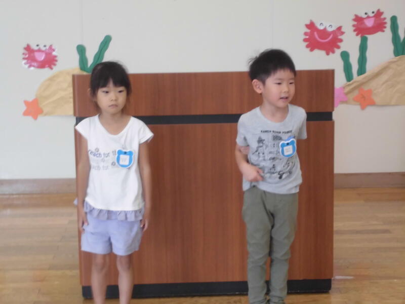 元気に園歌を歌い、園長先生の話を真剣に聞いていました。また、年長さん、年少さんの代表が家族でお出かけをしたことなどの夏休みの思い出を堂々と発表しました。