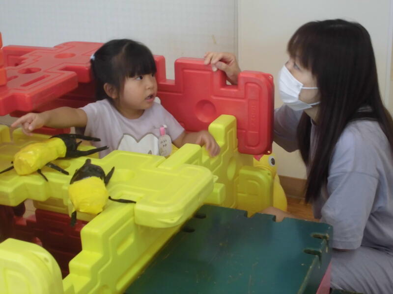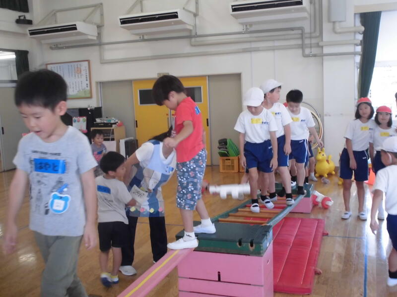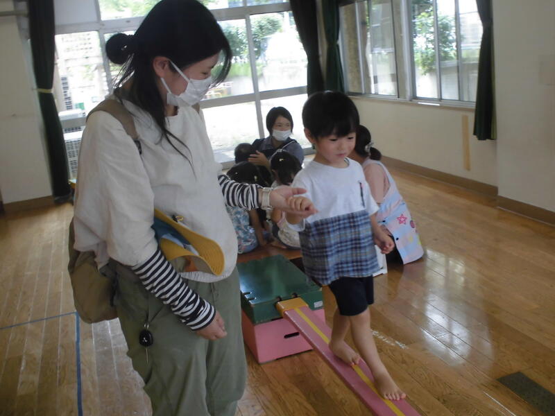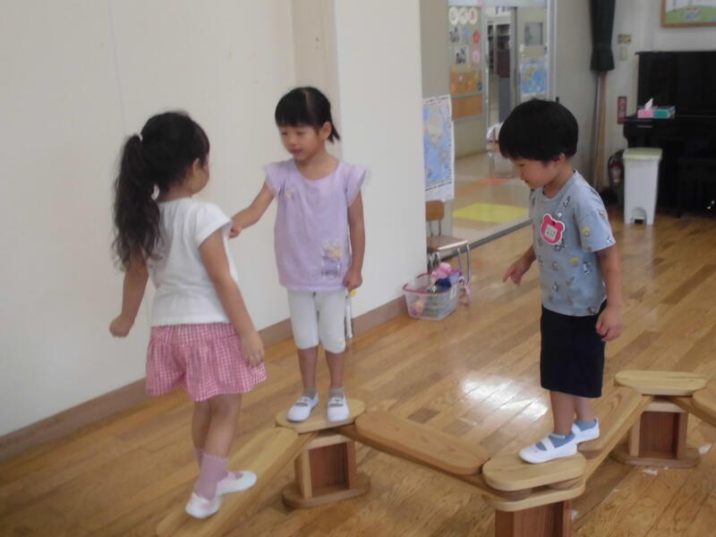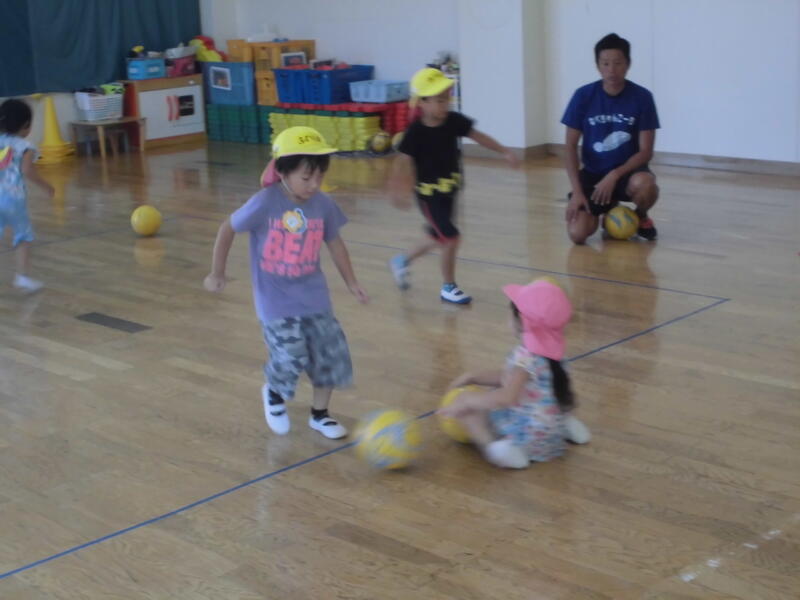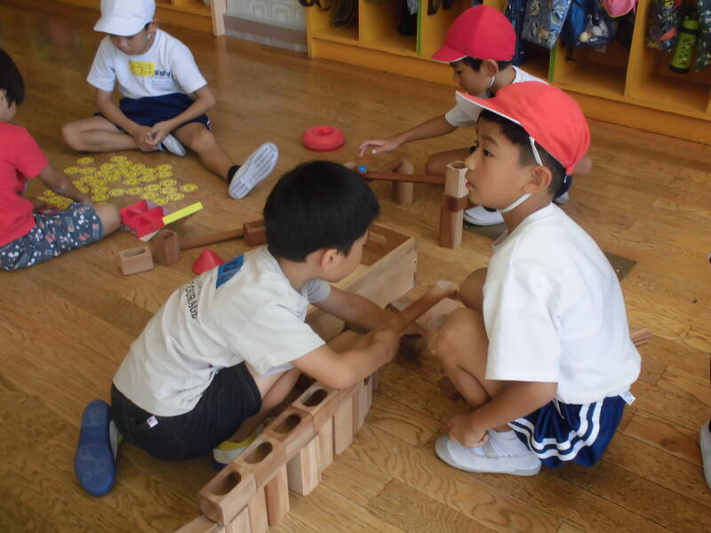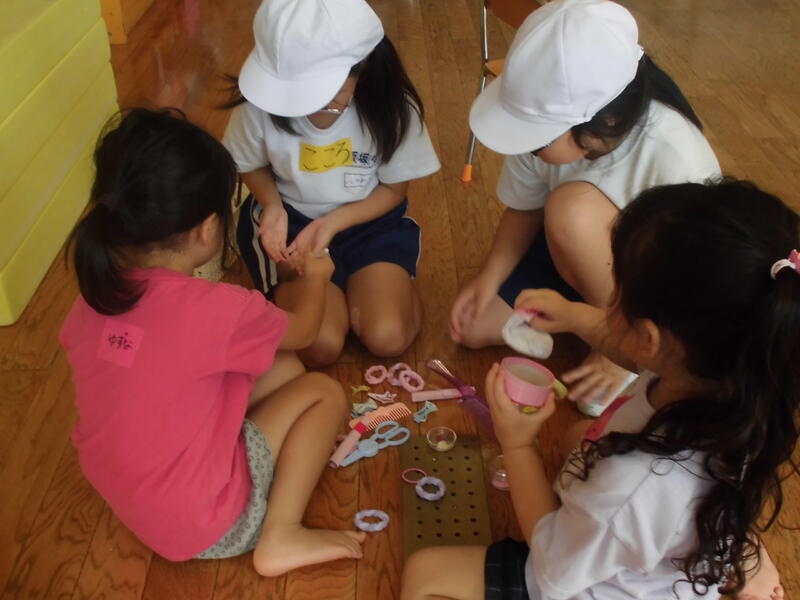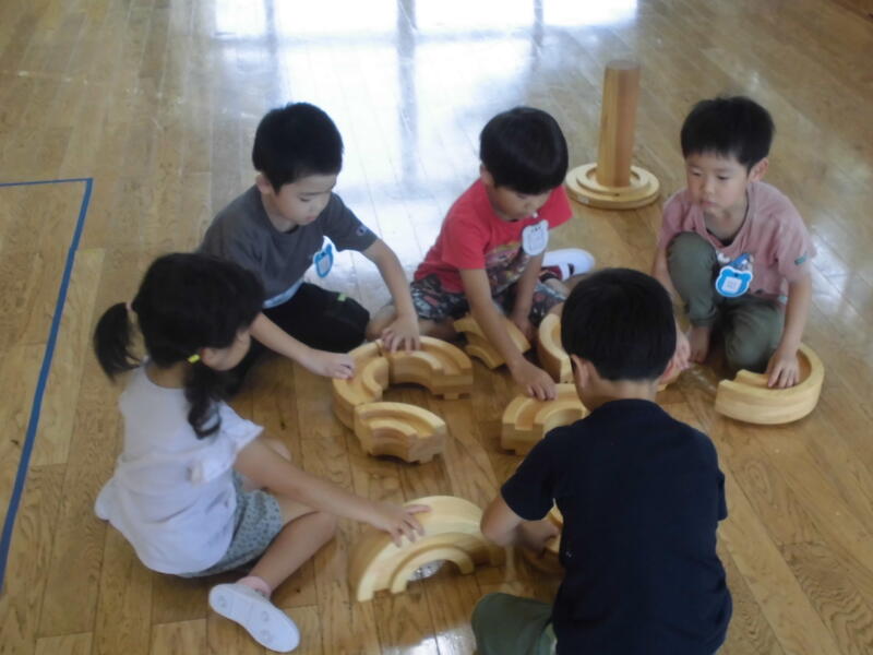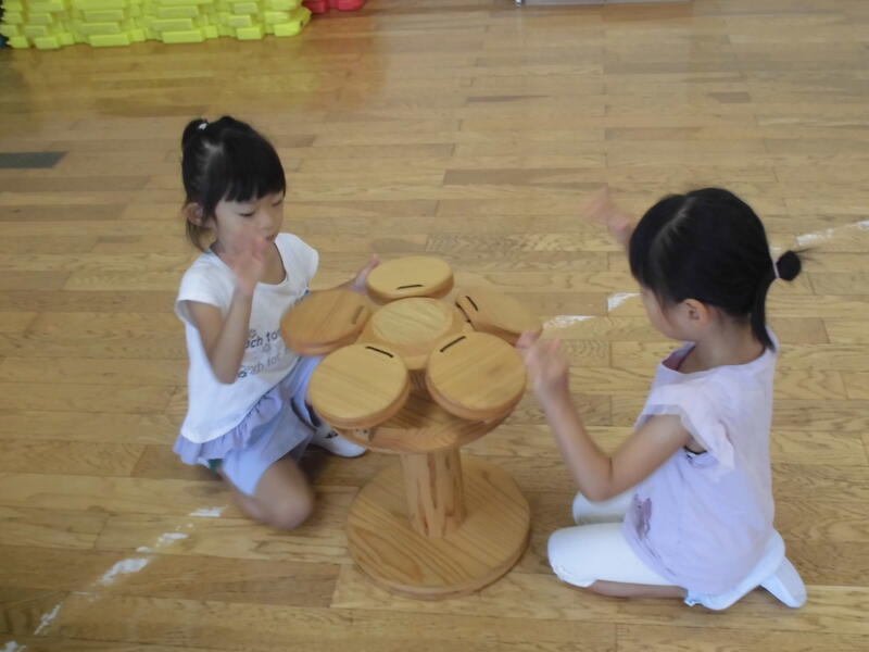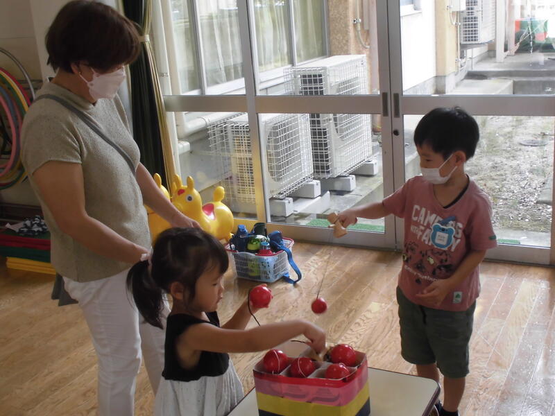 子どもたちは先生からそれぞれの遊び方を聞き、すぐに楽しく遊び始めました。