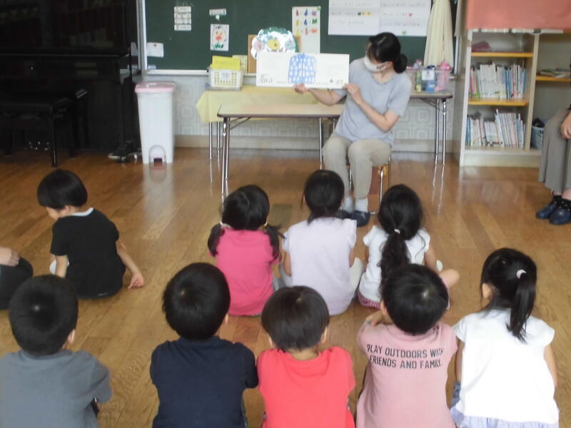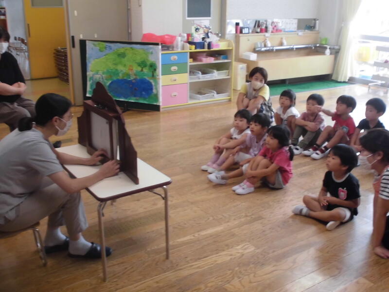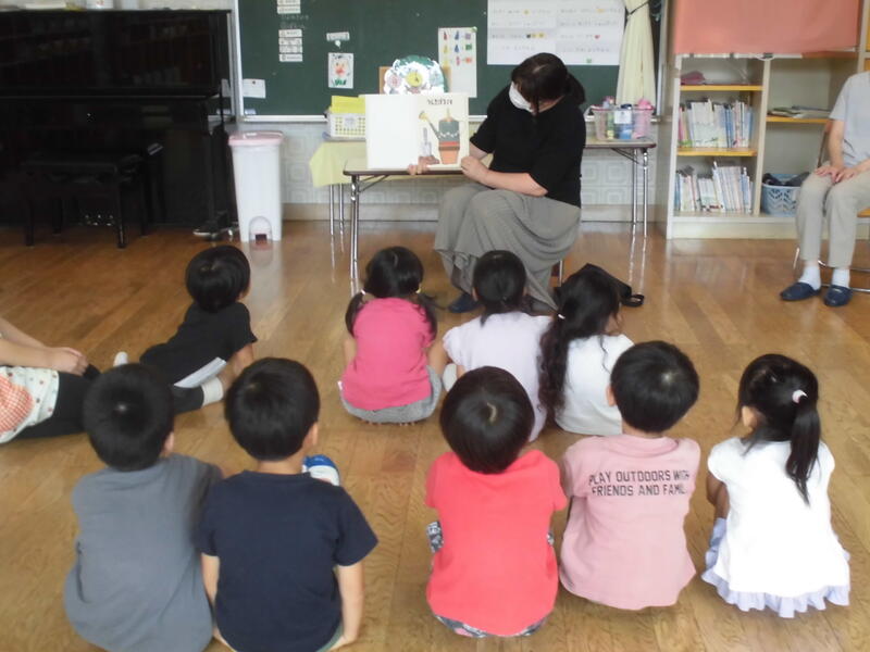 今日は読み聞かせボランティアの方2名が来園し、紙芝居や絵本の読み聞かせをしていただきました。