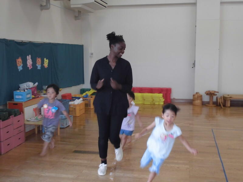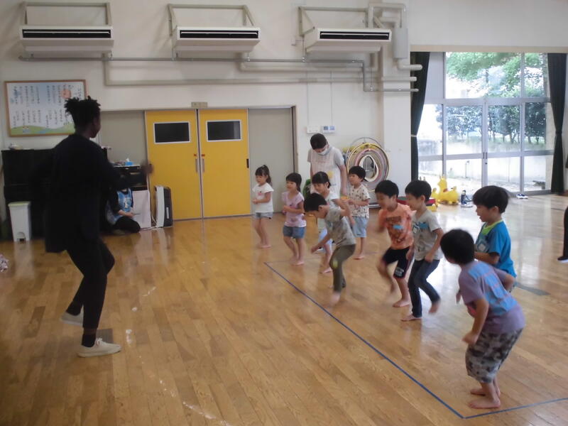朝のランニングや体操を一緒に行い、その後前回覚えた「英語のじゃんけん」「ダンス」を楽しみました。