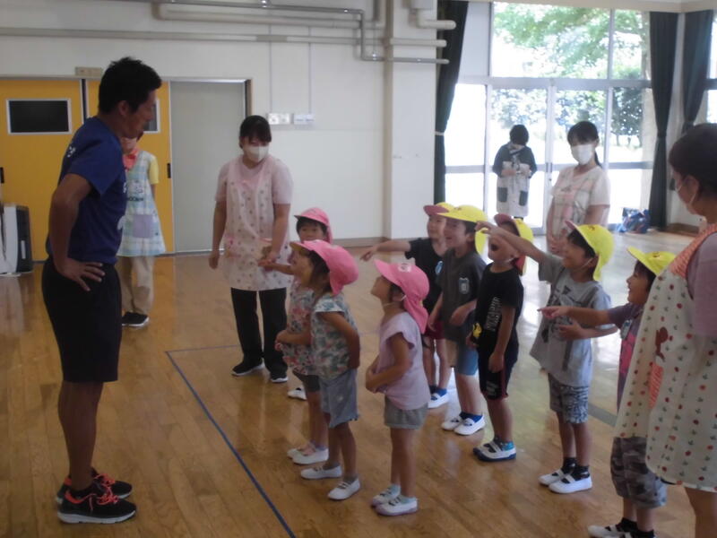 今日は、ALTのベネ先生が来園して、子どもたちが楽しく英語に触れる活動を行いました。