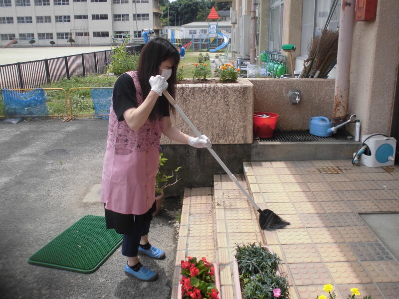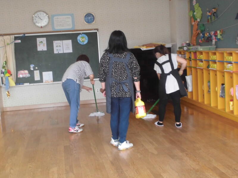 今回は、教室のワックス塗りと廊下・玄関の清掃をお願いしました。少ない人数での作業でしたが、協力して効率的に作業を進めていただきました。最後に園児全員から「きれいにしてくださりありがとうございました。」とお礼の言葉を述べました。これからも、きれいになった幼稚園を大切に使っていきましょう。