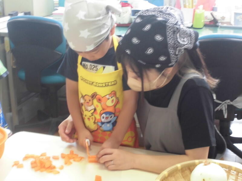 今日は「カレー会食」を行いました。朝早くからおうちの方が来園し、具材の準備をしていただきました。