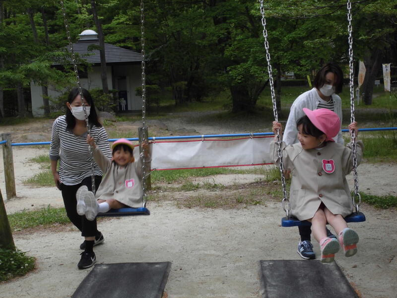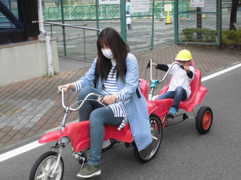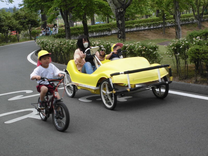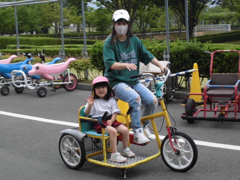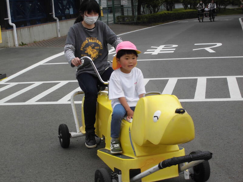 最後に「サイクル広場」で自転車の運転に挑戦しました。楽しい乗り物に乗っていましたが、ほとんどお母さんがペダルをこいでいたようでした。(筋肉痛が心配です)何とか天気がもって、楽しい1日を過ごしました。