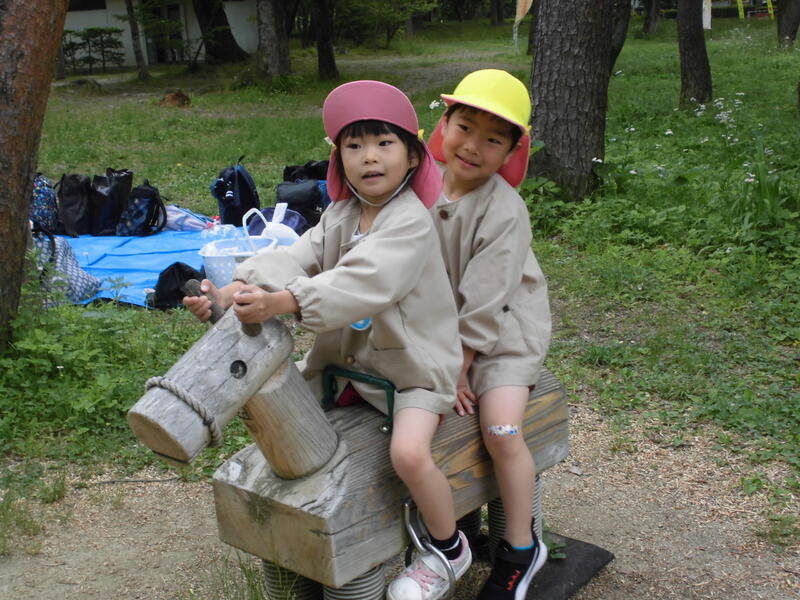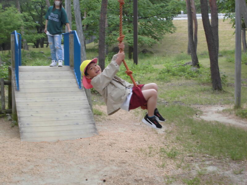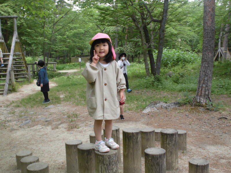 今日は親子遠足で「あづま総合運動公園」に出かけました。天気が心配でしたので、前日には大きなてるてる坊主を作って雨が降らないように祈りました。そのかいあってしのぎやすい天気のもと、まずは「トリムの森」でアスレチックを楽しみました。その後、親子でダンスを楽しんで、おいしいお弁当をおなか一杯いただきました。