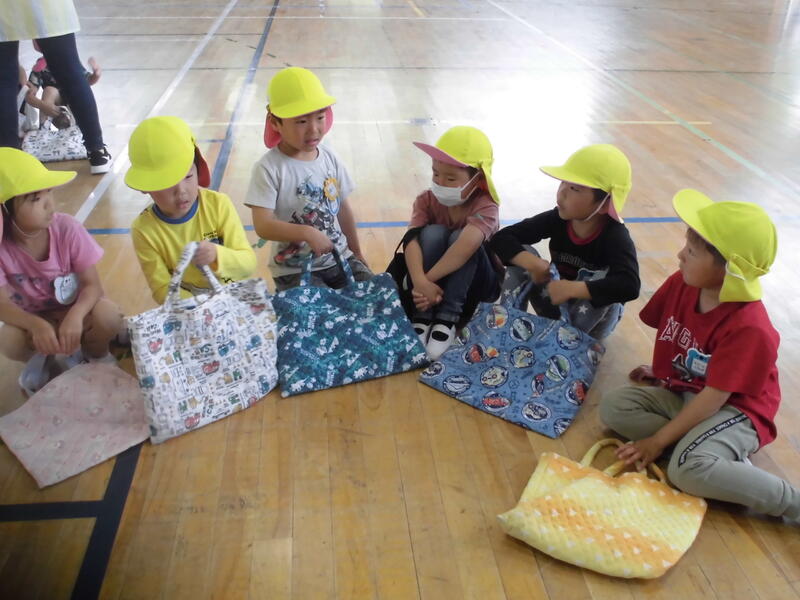 今日は「避難訓練」がありました。まず、避難の仕方について先生の話を聞いて、その後避難開始。頭を守る帽子を着用するとともに、煙を吸い込まないようにハンカチで口を押さえて素早く避難することができました。