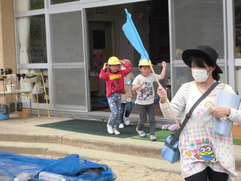 2023年5月25日 15時27分今日は「避難訓練」がありました。まず、避難の仕方について先生の話を聞いて、その後避難開始。頭を守る帽子を着用するとともに、煙を吸い込まないようにハンカチで口を押さえて素早く避難することができました。