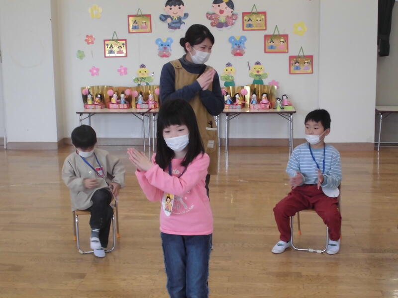 今日は3月3日、幼稚園で「ひなまつりかい」を行いました。