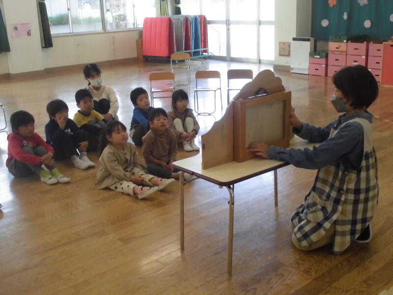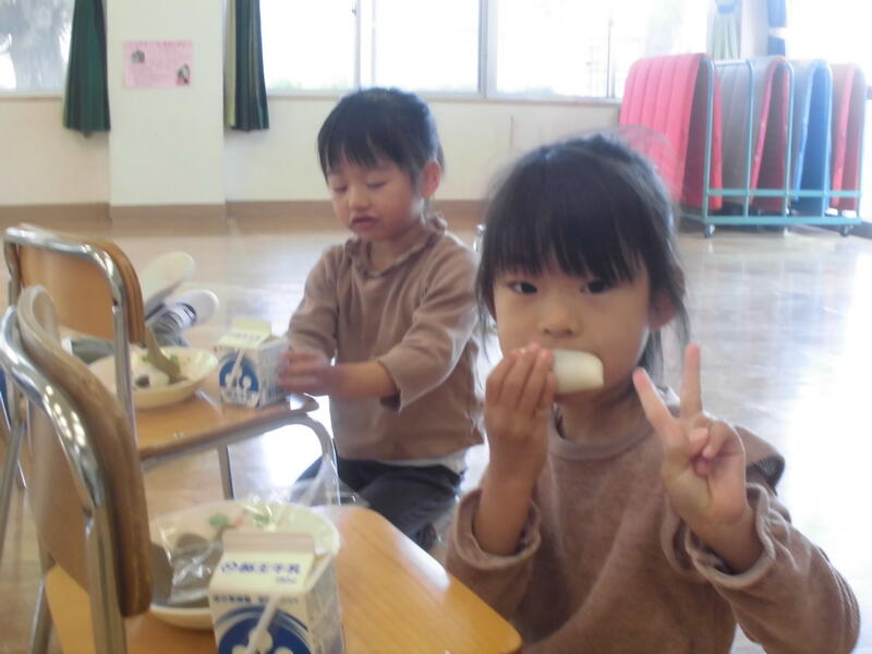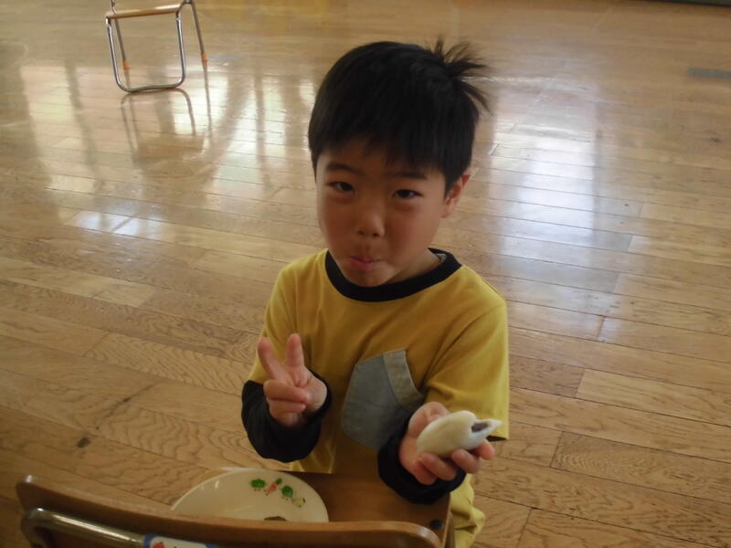 そしてこいのぼりの由来についての紙芝居を見ました。その後待望のおやつ。みんなで柏餅を食べました。