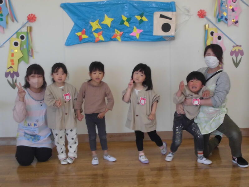 みんなで元気に「こいのぼり」を歌った後、先生がそれぞれのクラスで作ったこいのぼりの説明をしました。